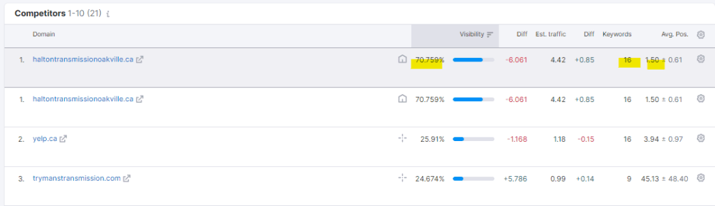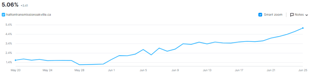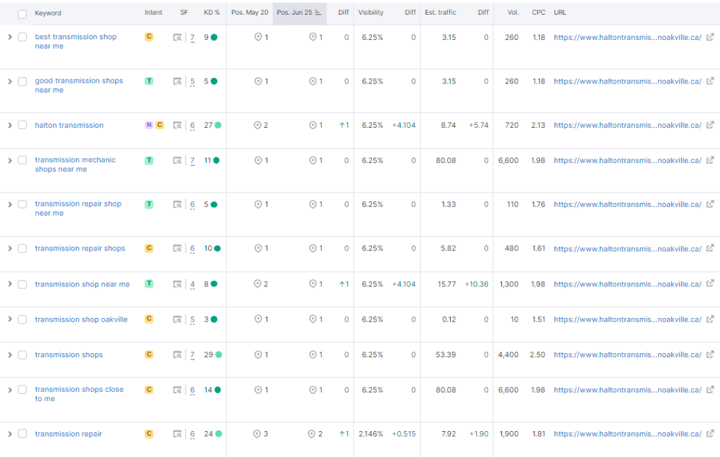 Complete dominance: #1 ranking across most major transmission keywords in Oakville